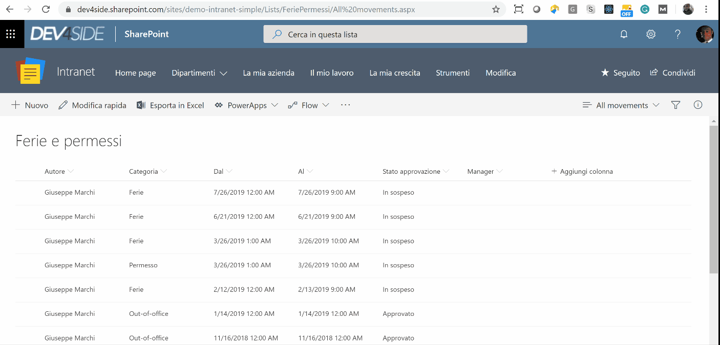 - in automatico da SharePoint
